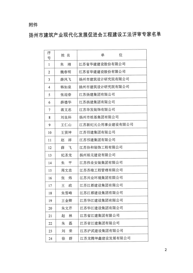 关于公布扬州市建筑产业现代化发展促进会工程建设工法评审专家名单的通知