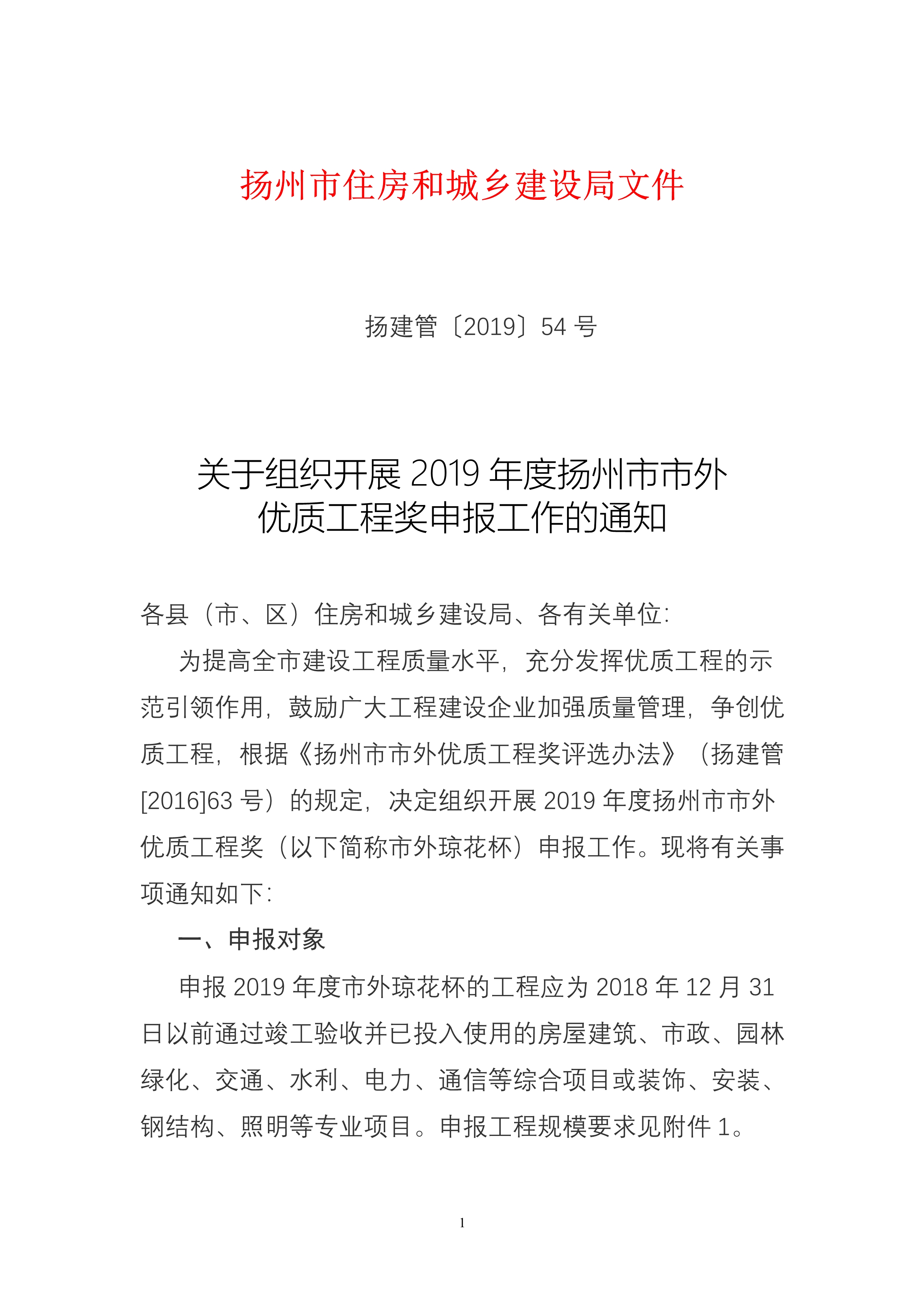 转发:关于组织开展2019年度扬州市市外 优质工程奖申报工作的通知