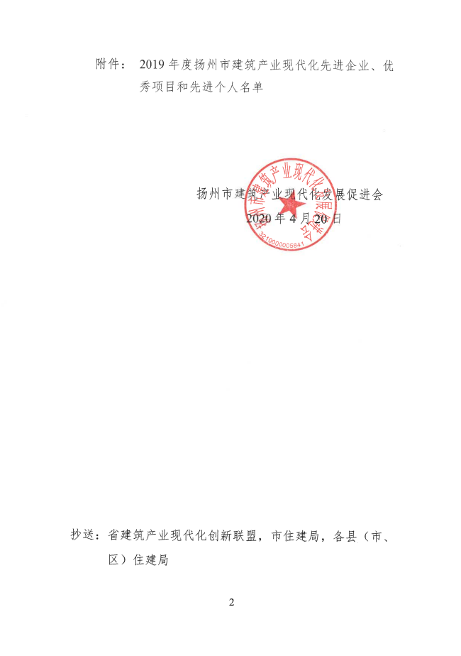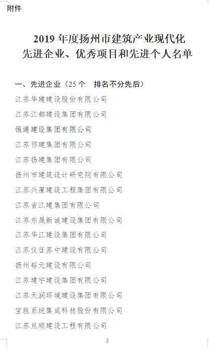 关于表彰2019年度扬州市建筑产业现代化先进企业、优秀项目和先进个人名单的决定