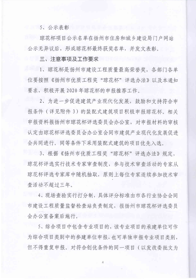 关于组织开展2020年扬州市优质工程奖“琼花杯”申报工作的通知