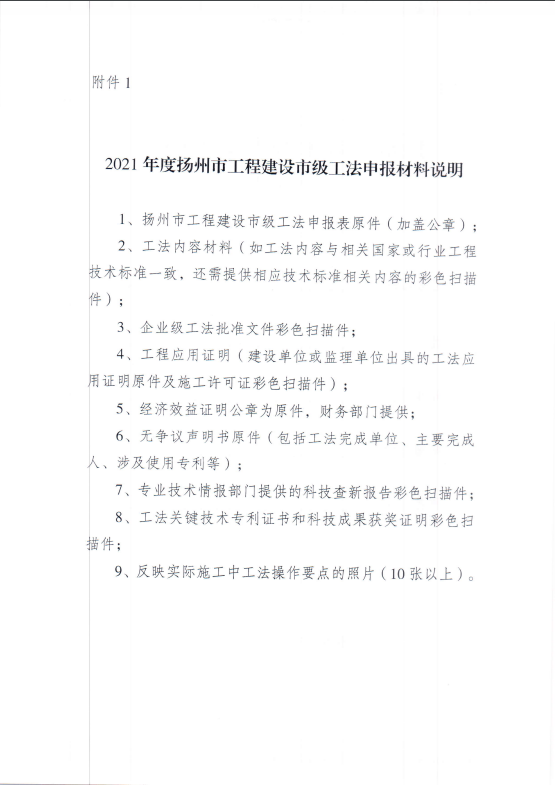 关于开展2021年度扬州市工程建设 市级工法申报工作的通知