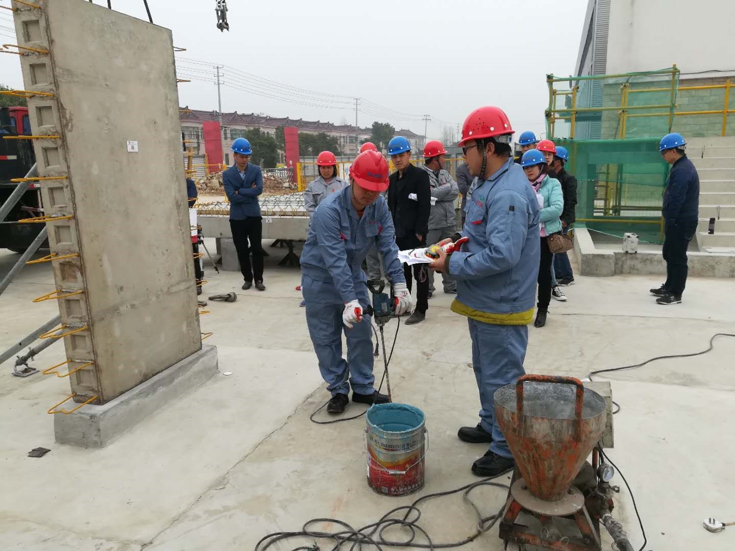 江苏华江建设集团参赛选手正在模拟灌浆作业