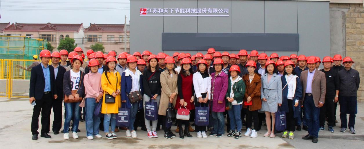 下午,参会人员集中乘车来到江苏和天下节能科技股份有限公司,在该公司相关负责人的带领下现场参观装配式建筑构件生产厂区和装配式建筑人才实训基地,现场观摩了预制墙板、梁和叠合板的吊装,以及灌浆等构件安装的实训过程。