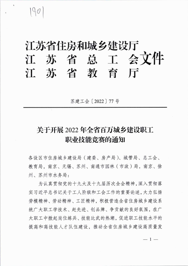 关于开展2022年全省百万城乡建设职工职业技能竞赛的通知