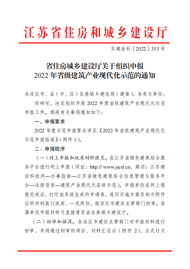 关于转发《省住房城乡建设厅关于组织申报2022年省级建筑产业现代化示范的通知》
