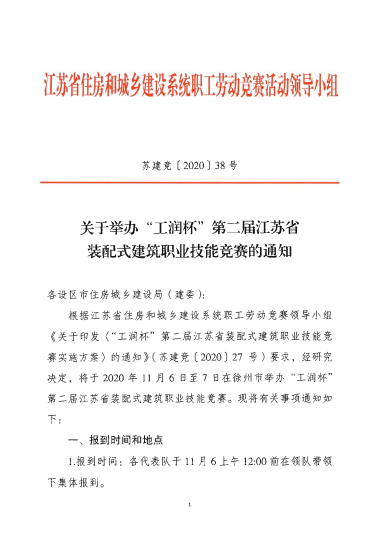 关于举办"工润杯"第二届江苏省装配式建筑职业技能竞赛的通知