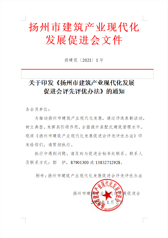 关于印发《扬州市建筑产业现代化发展促进会评先评优办法》的通知