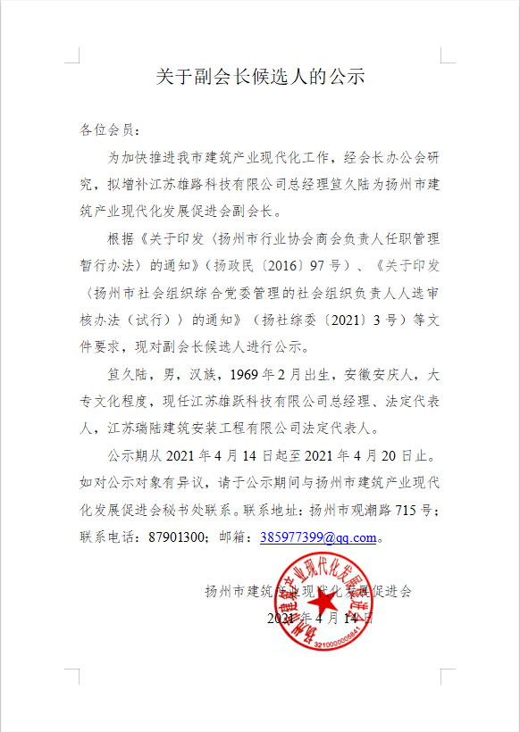 关于2020年度扬州市建筑产业现代化 先进企业、优秀项目和先进个人名单的公示