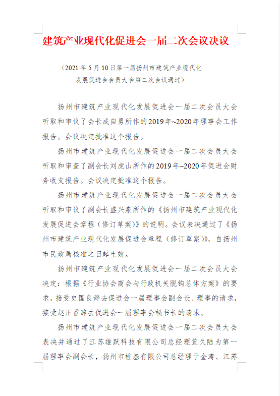关于表彰2020年度扬州市建筑产业现代化先进企业、优秀项目和先进个人名单的决定