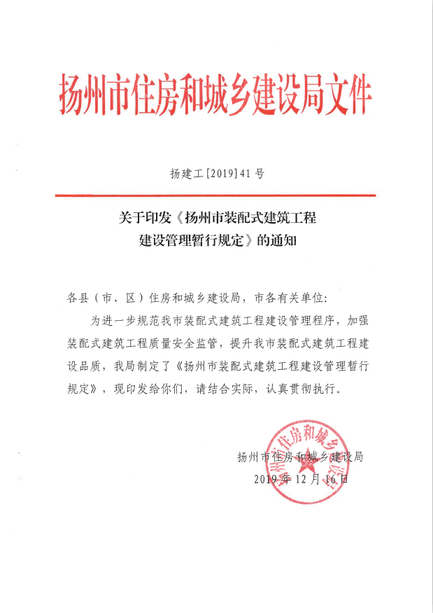 关于开展扬州市建筑产业现代化评先评优申报工作通知