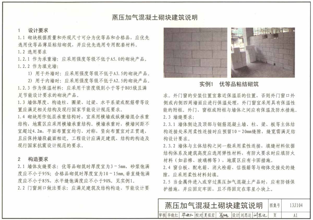 13J104蒸压加气混凝土砌块、板材构造