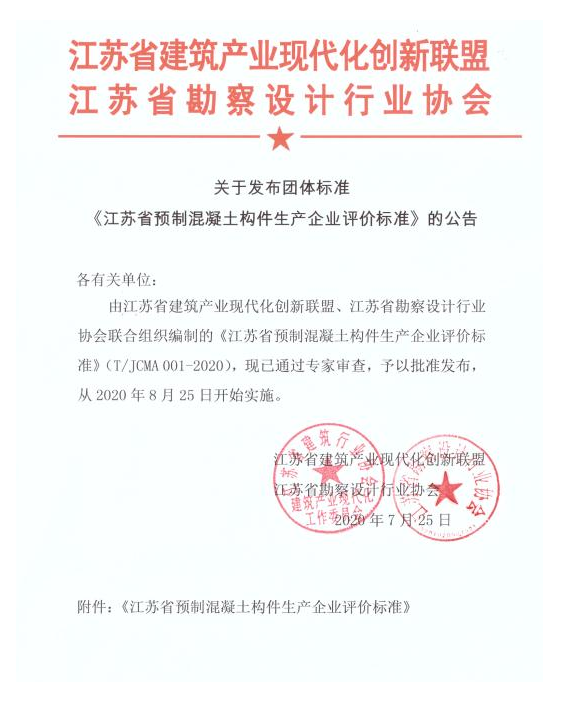 《江苏省预制混凝土构件生产企业综合评价标准》